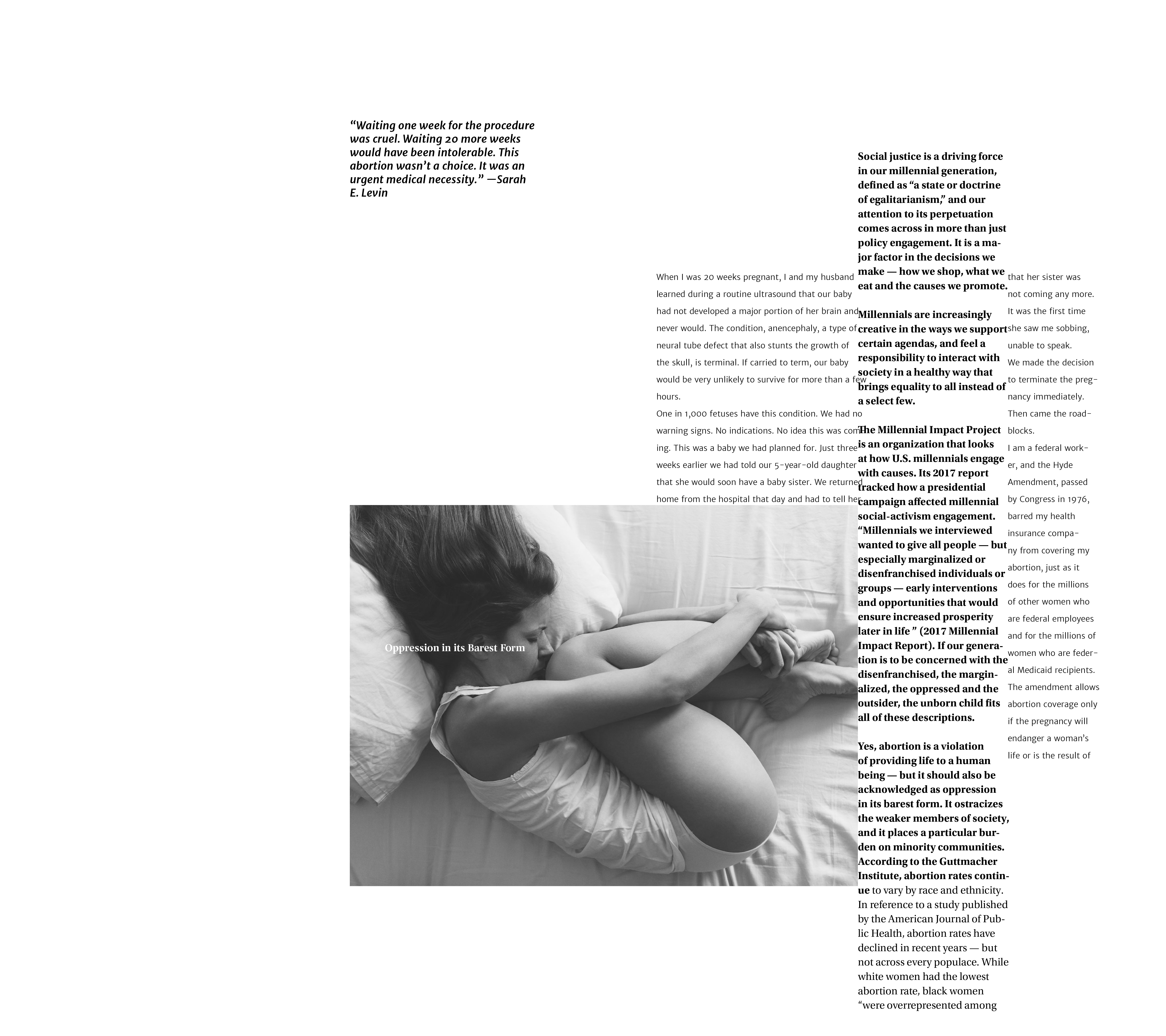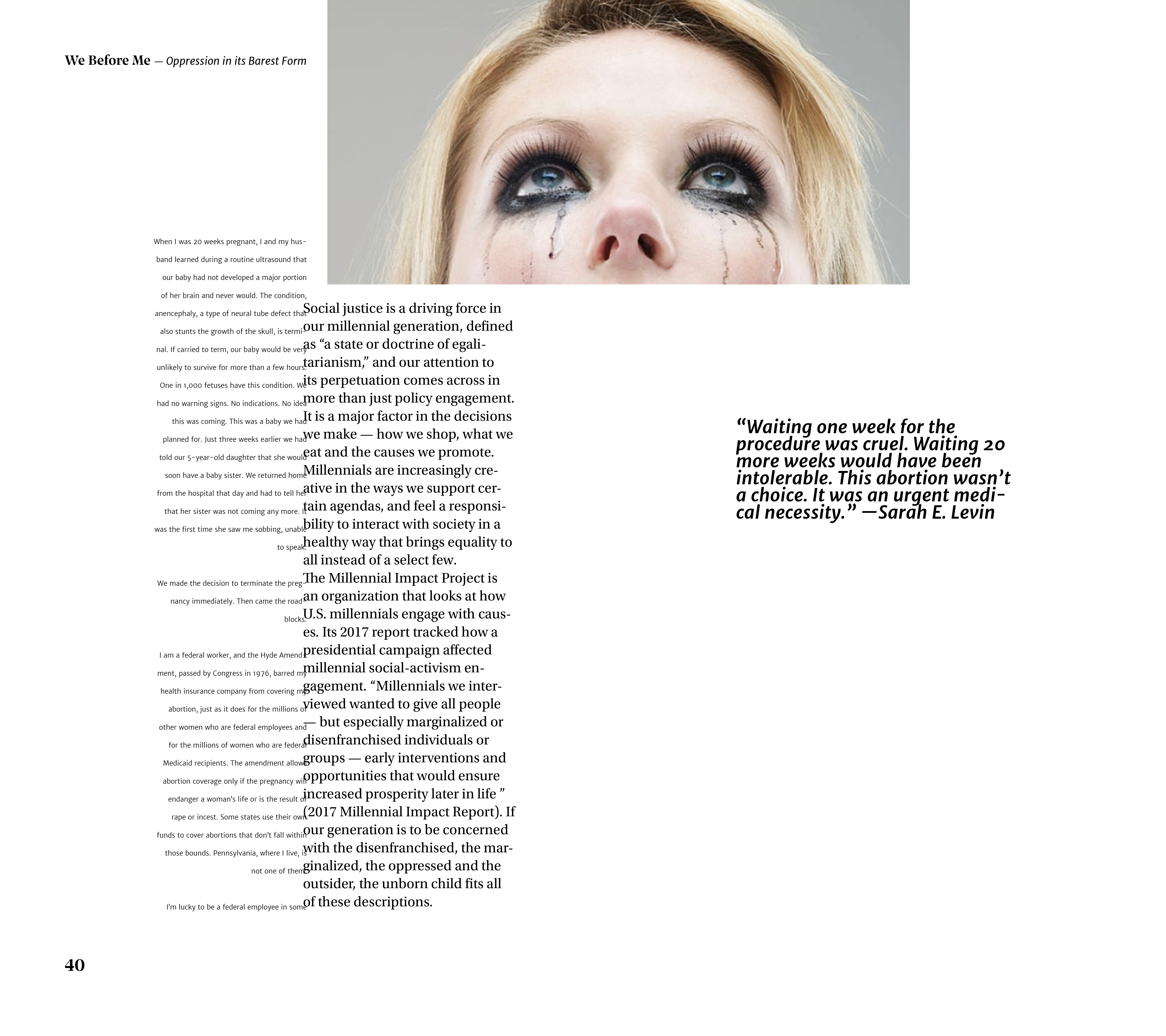 We/Me [“We Over Me”] is a fictional human rights activist publication that discusses controversial talking points concerning human lives and rights. It brings multiple perspectives into account while taking a humanitarian approach in the conscious delivery of its contents. The title is meant to represent that we the people should come together instead of putting ourselves or biases before other people.